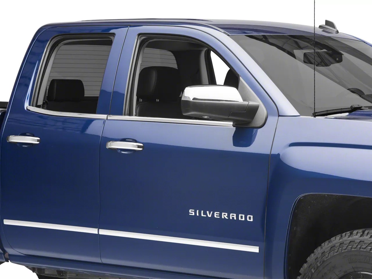 Make your vehicles exterior shine with the elegant chrome-style window sills trim from SAA. Taken off at 1500 miles the trim is in very good condition. Laser cut from high quality mirror polished stainless. If youre looking for stylish 2014-2018 window visors to keep the rain out of your Silverado interior while enjoying fresh air during a storm or 2014-2018 hood shields to lessen the bug barrage on your windshield AmericanTrucks selection of 2014-2018 exterior trim has that and more.